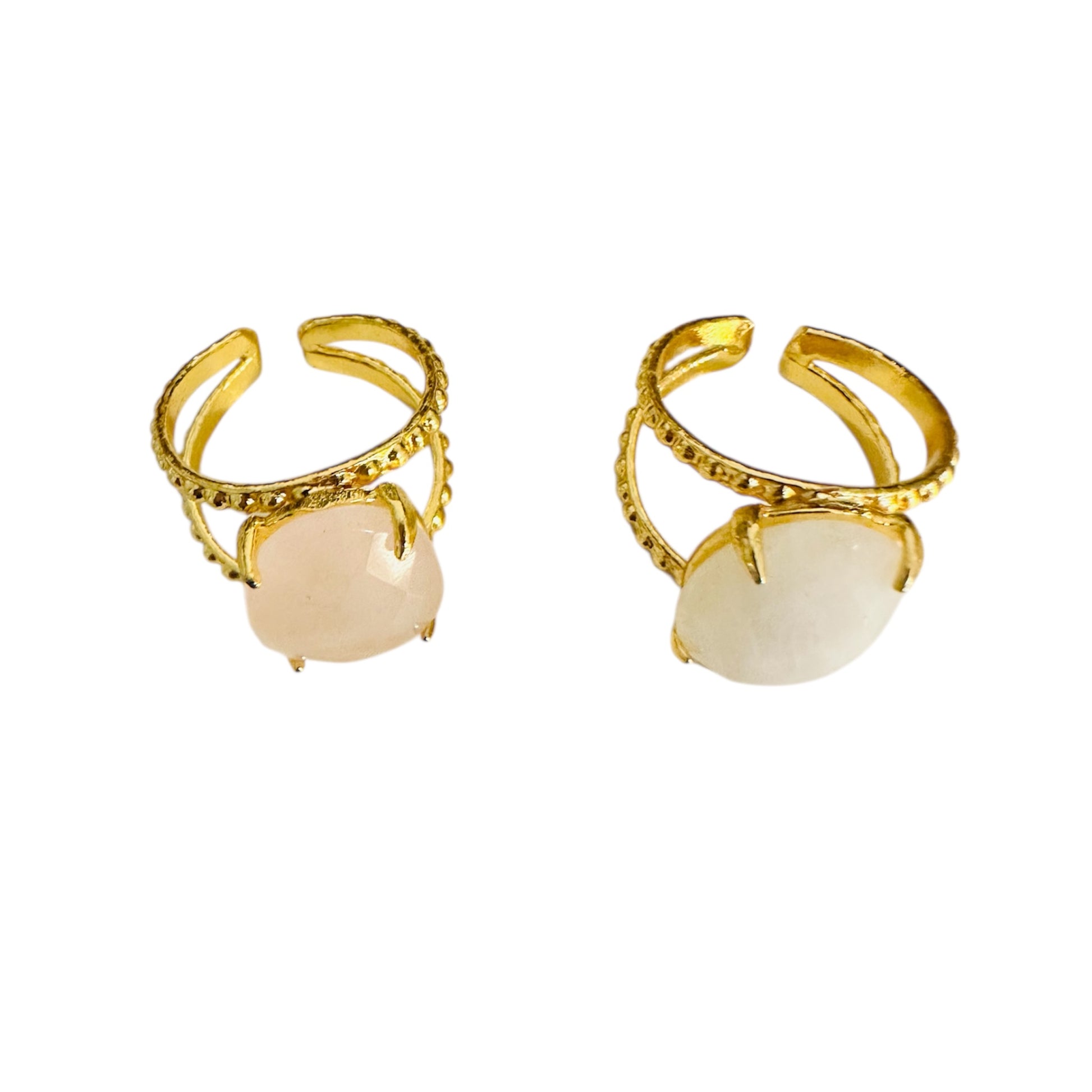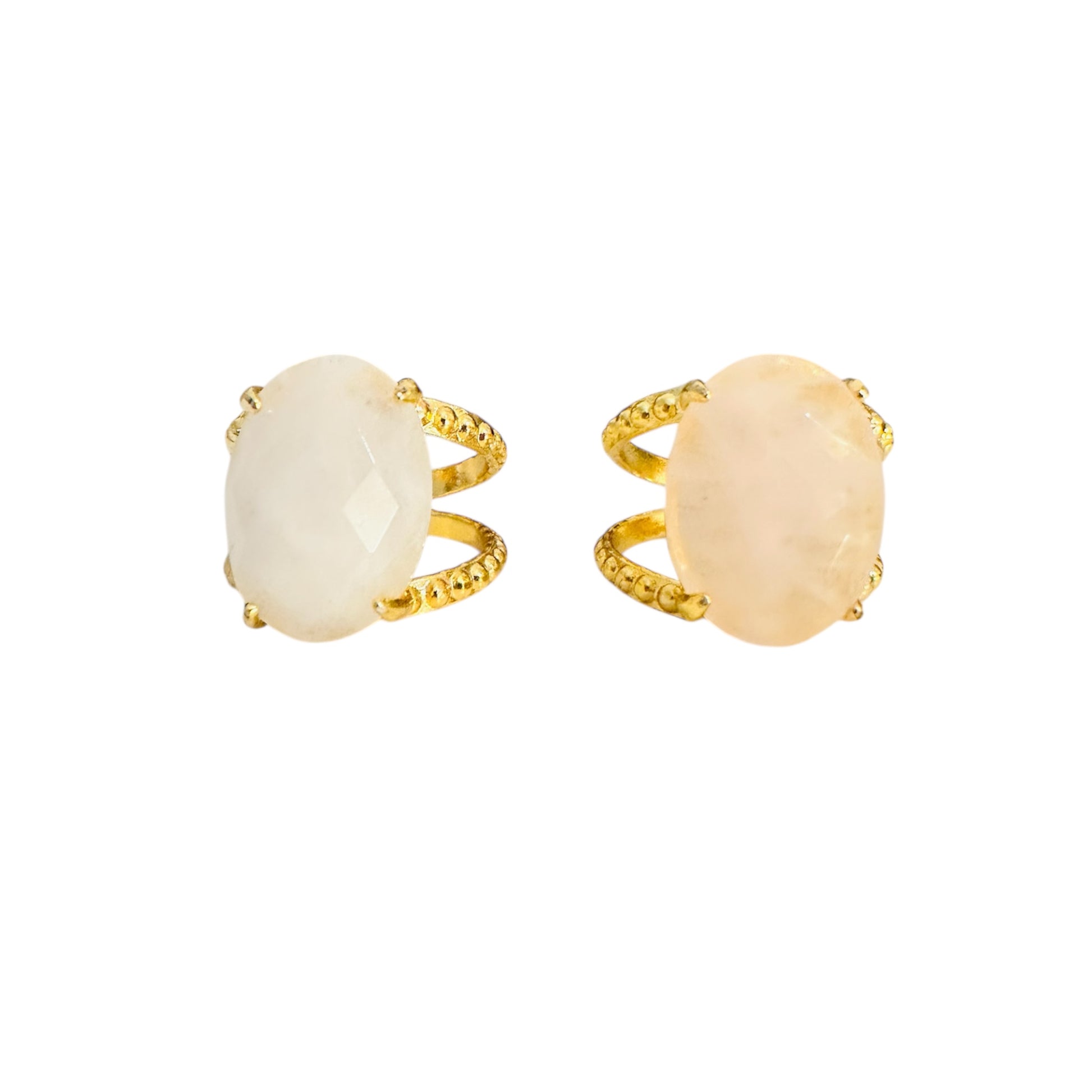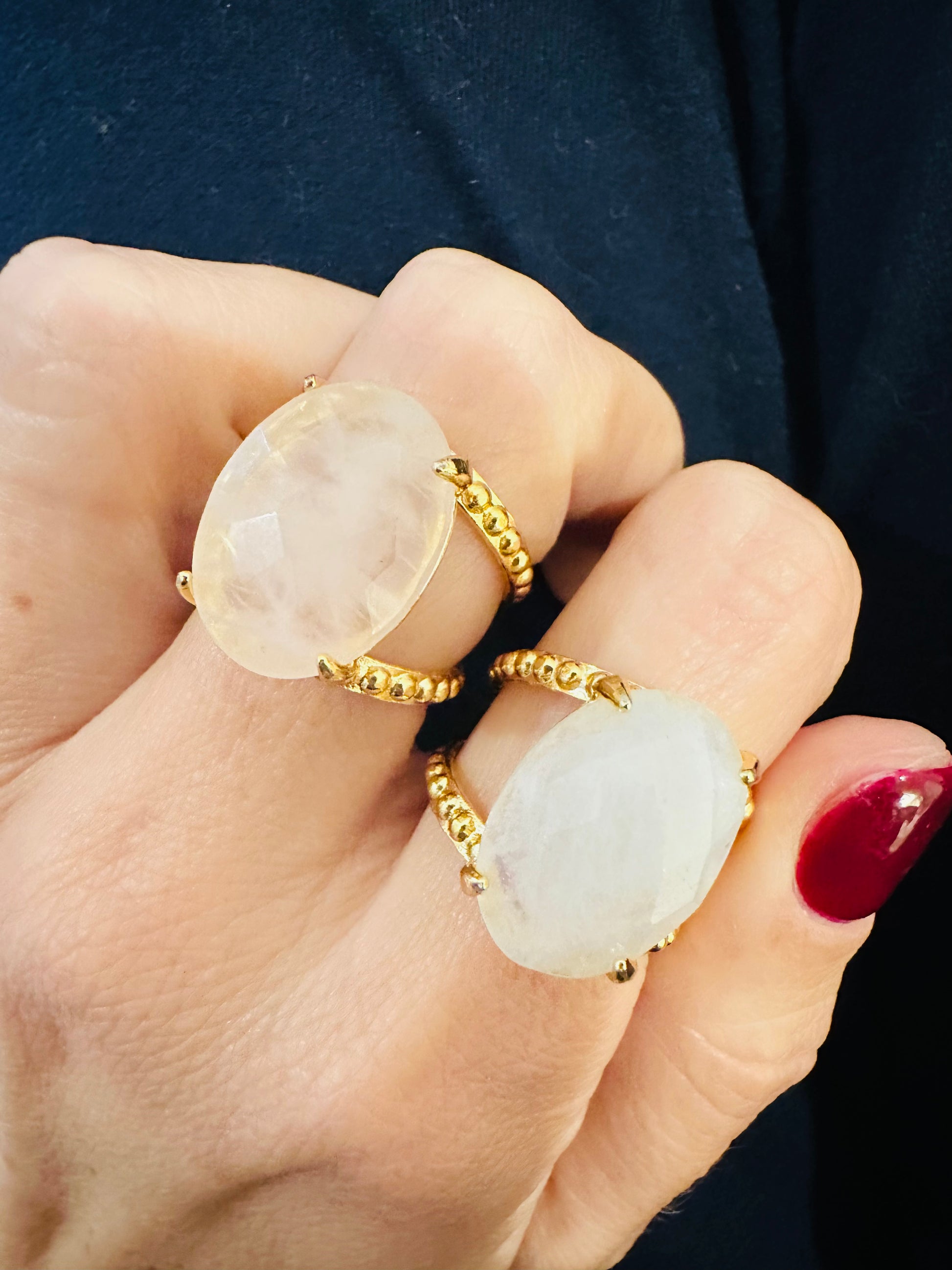 Disponibile in due varianti con quarzo rosa e pietra di luna.