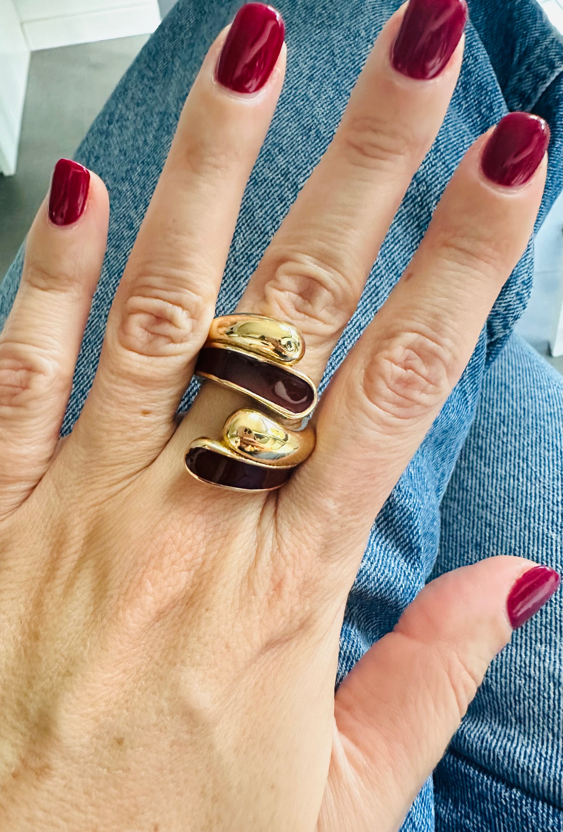 Anello modello contrarie’ doppio in argento 925 in elettroformatura placcato oro 18k con smalto a freddo interamente realizzato a mano.