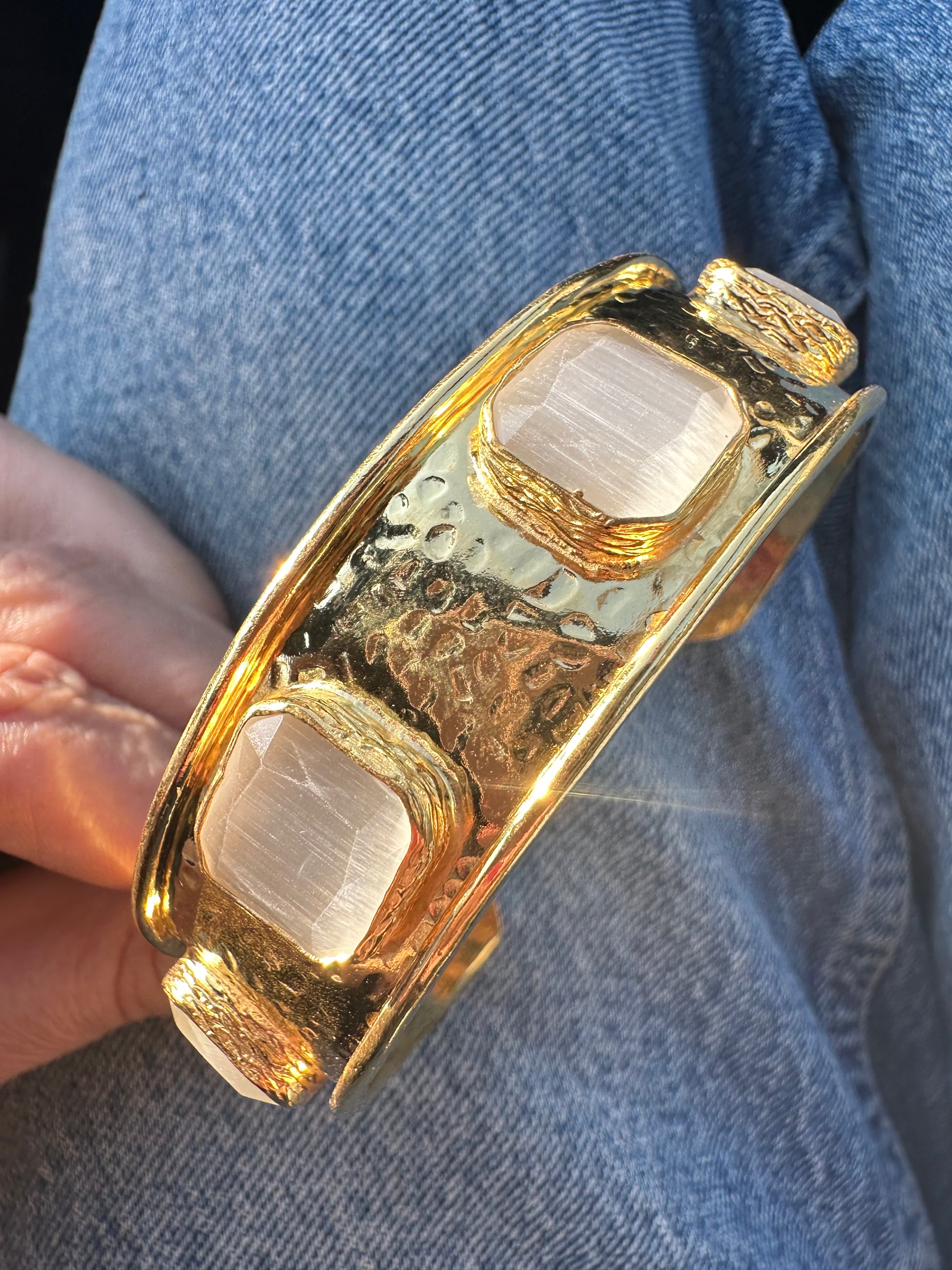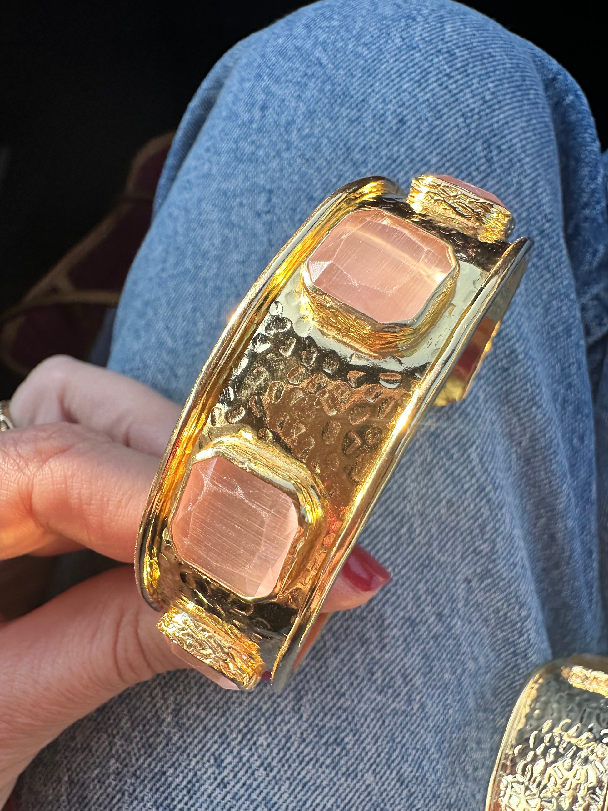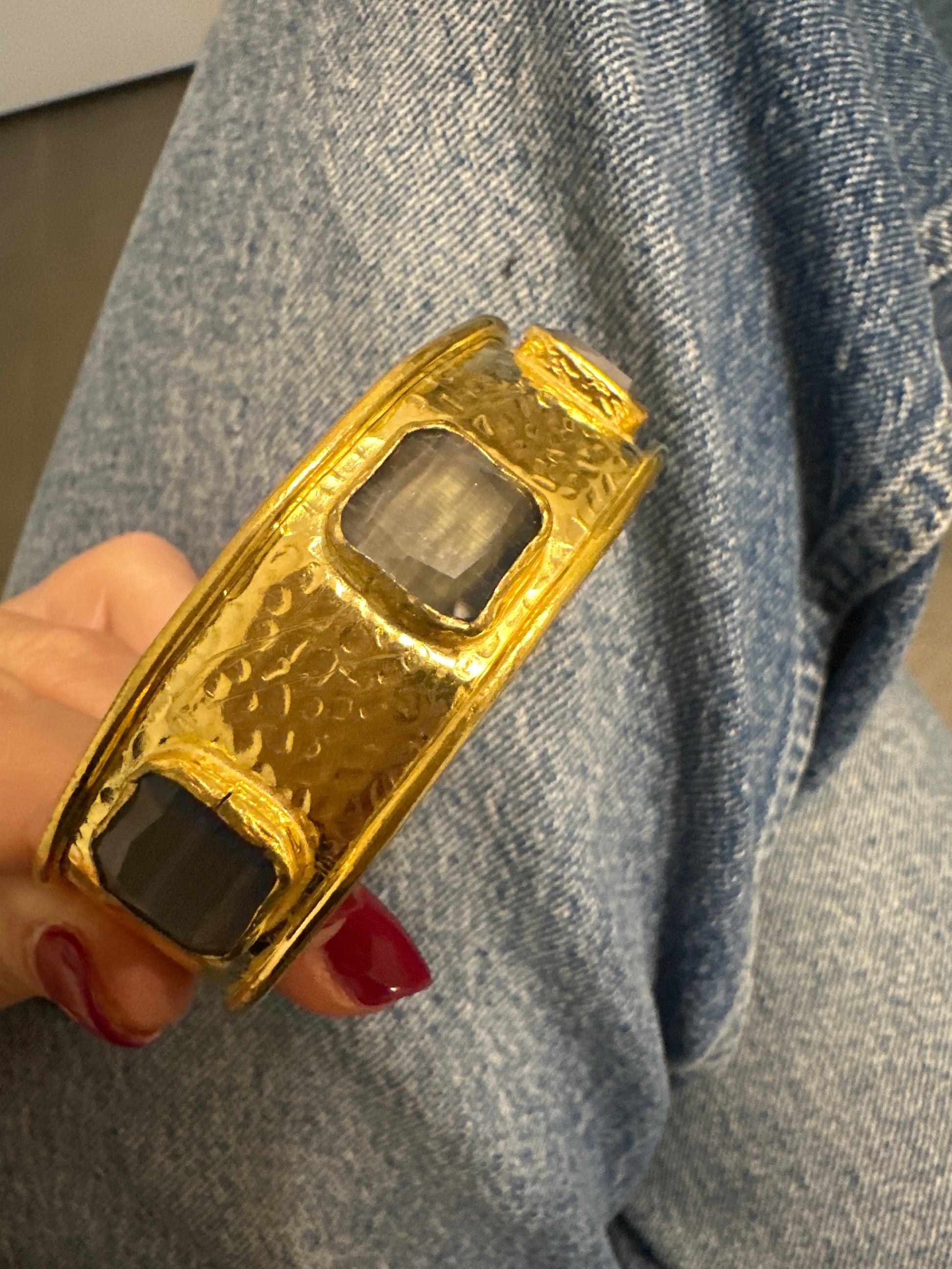 Splendidi bracciali bangle in ottone martellato con pietre incastonate. Disponibile in 10 varianti colore: beige nude, rosa, bianco (il bianco è un bianco sporco), verde smeraldo, blu (celeste) e arancione (simile al colore della corniola), giallo, verde chiaro e blu jeans.