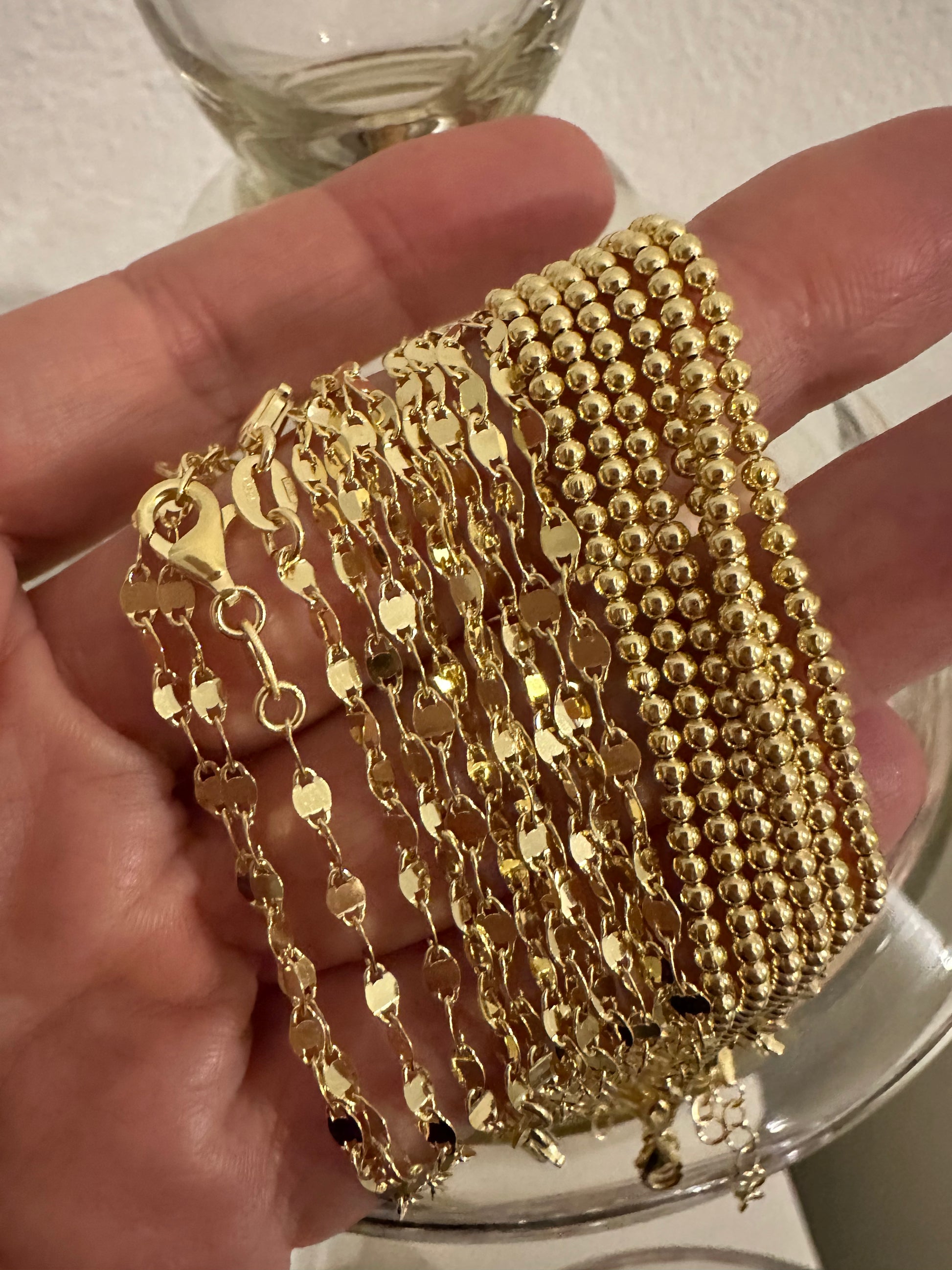 Deliziosi braccialettini in argento 925 placcato oro caratterizzati da una catena luminosissima che brillerà al tuo polso.