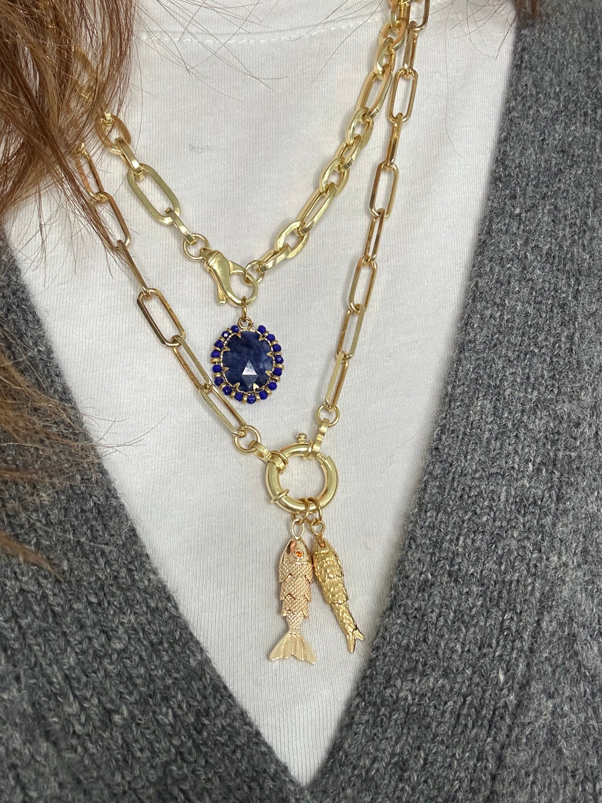 Ogni ciondolo è venduto con anellino per infilarlo nelle collane e nelle chiusure delle collane come in foto.
