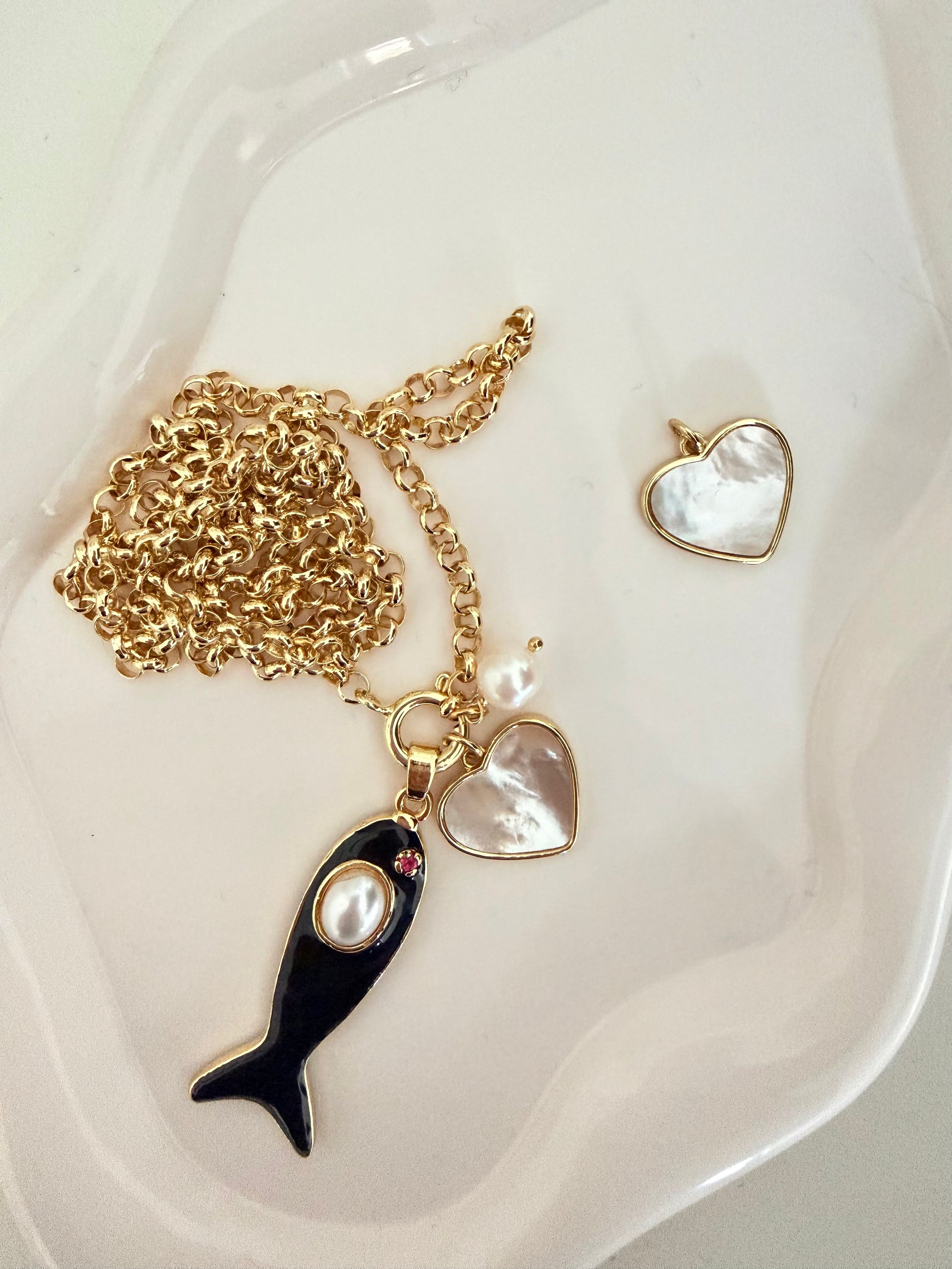 Delizioso ciondolo cuore in madreperla su ottone placcato oro.