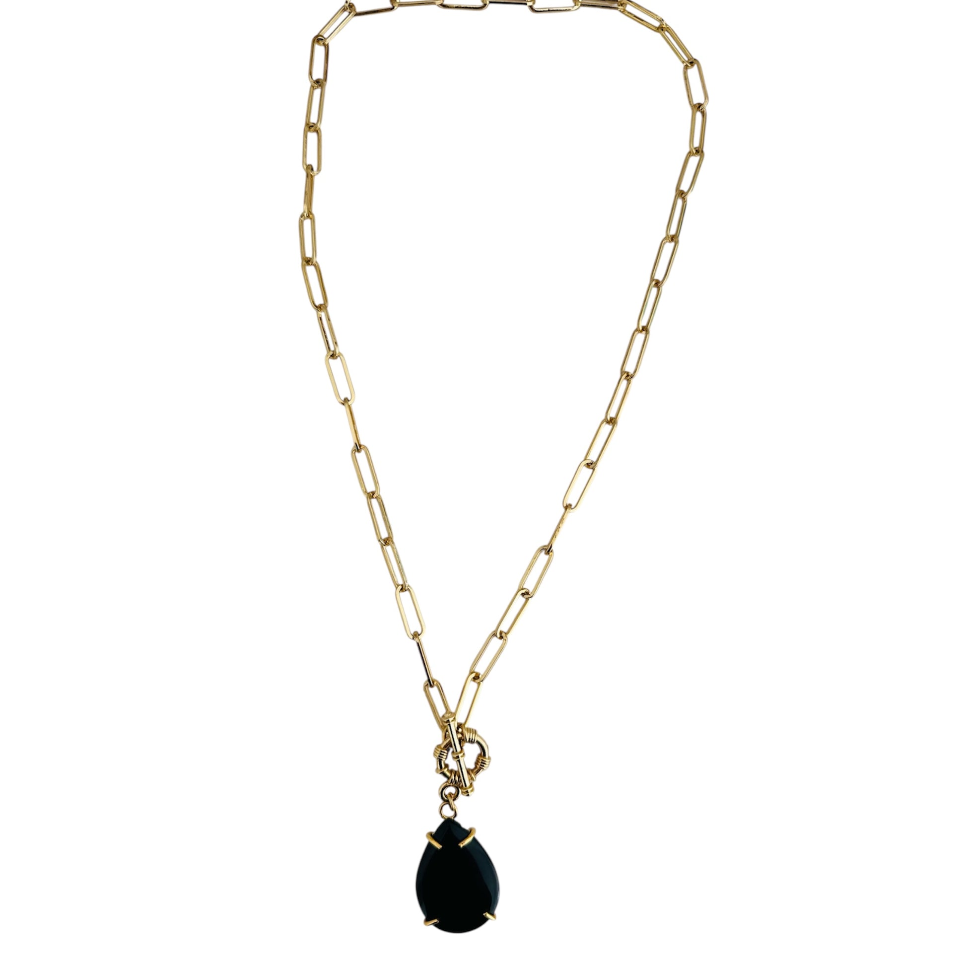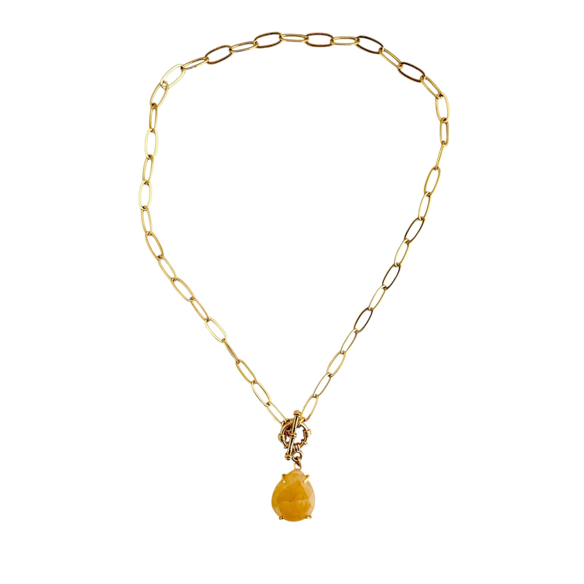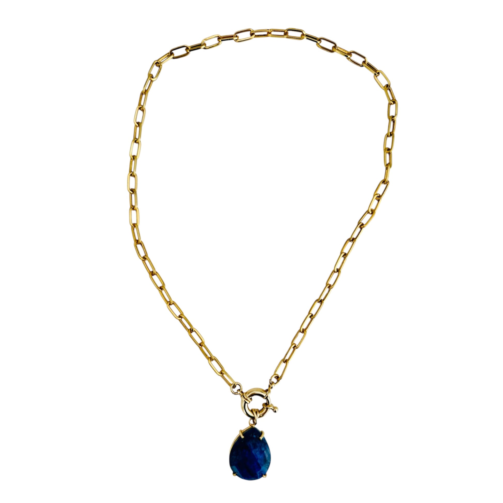 Bellissima catena in ottone placcato oro con ciondolo in pietra dura naturale.