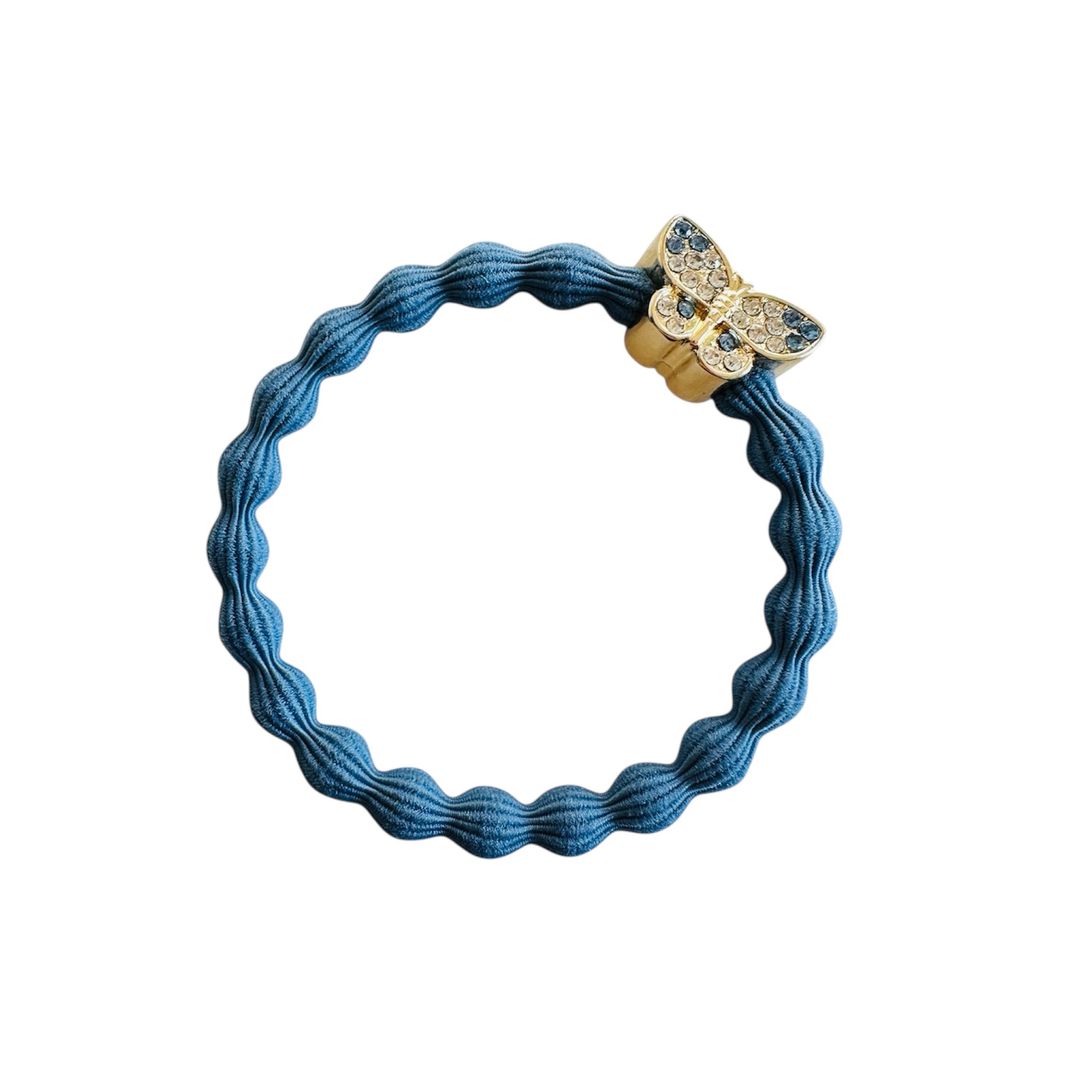 Deliziosa farfalla brillanti nata su elastico color jeans.