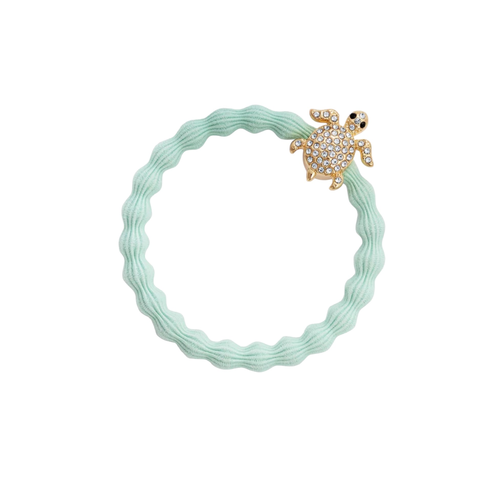 Delizioso ciondolo tartaruga con strass su elastico verde acqua.