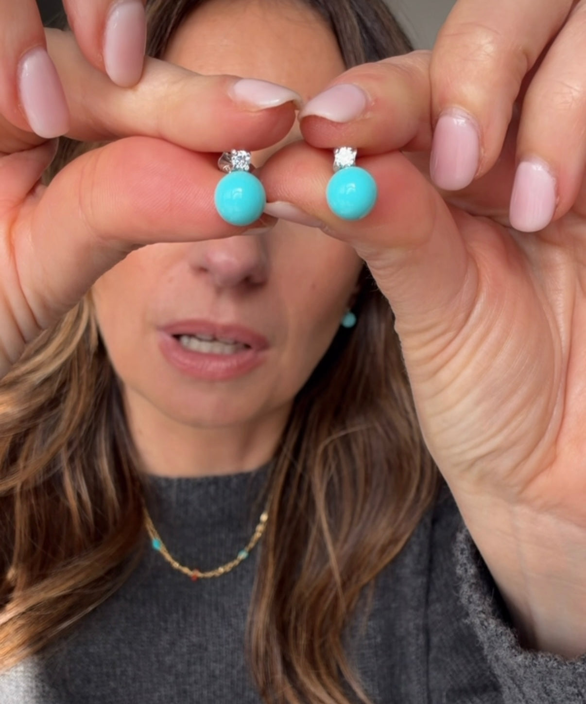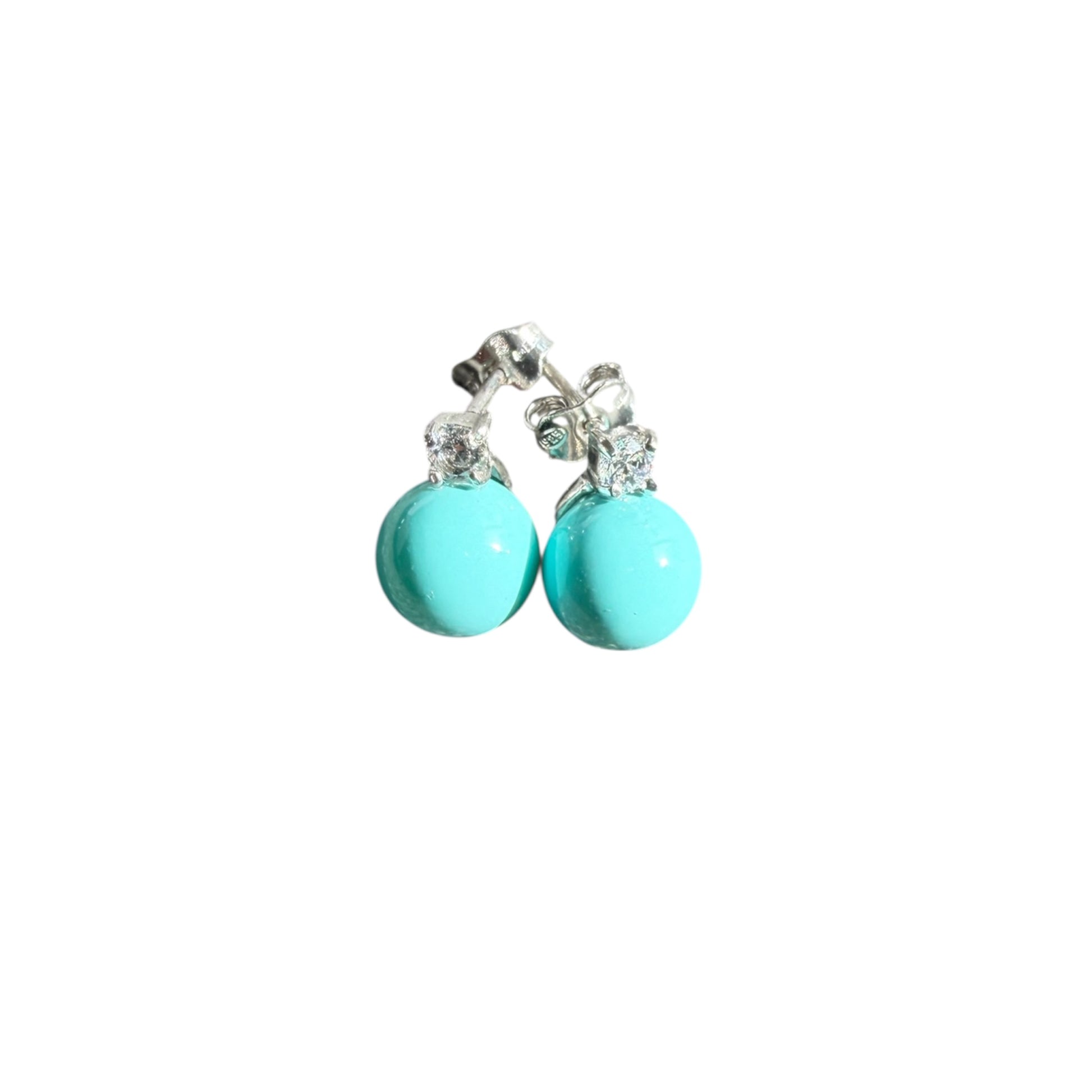 Deliziosi orecchini a lobo in argento 925, zircone e pasta di turchese.