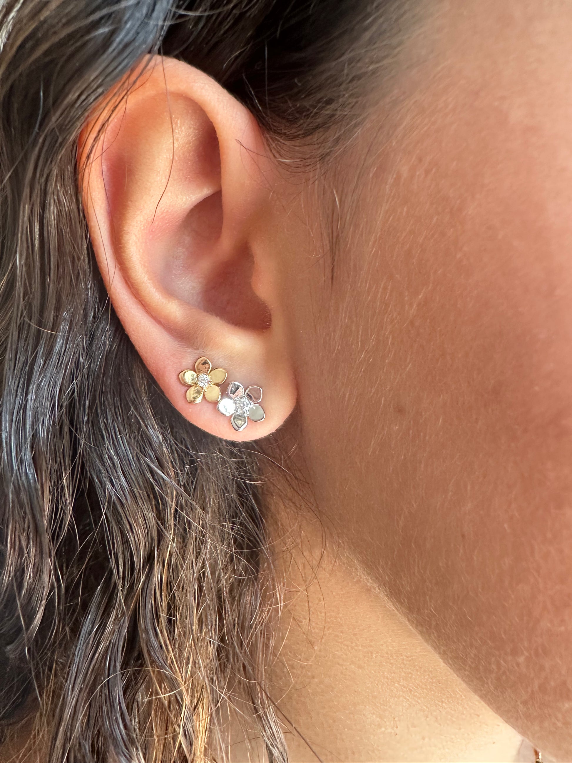 Deliziosi orecchini a lobo in argento 925 con design a fiore e zircone al centro.